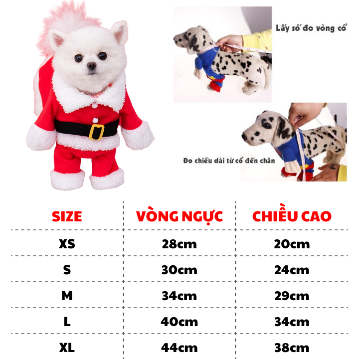 Áo cosplay Ông già Noel cho chó mèo thích hợp mặc trong các dịp lễ, chụp ảnh, đi chơi, hoặc các sự kiện đặc biệt, phù hợp nhiều dịp. Áo cosplay Ông già Noel cho chó mèo nhiều kích cỡ phù hợp với nhiều giống chó mèo từ nhỏ đến lớn.