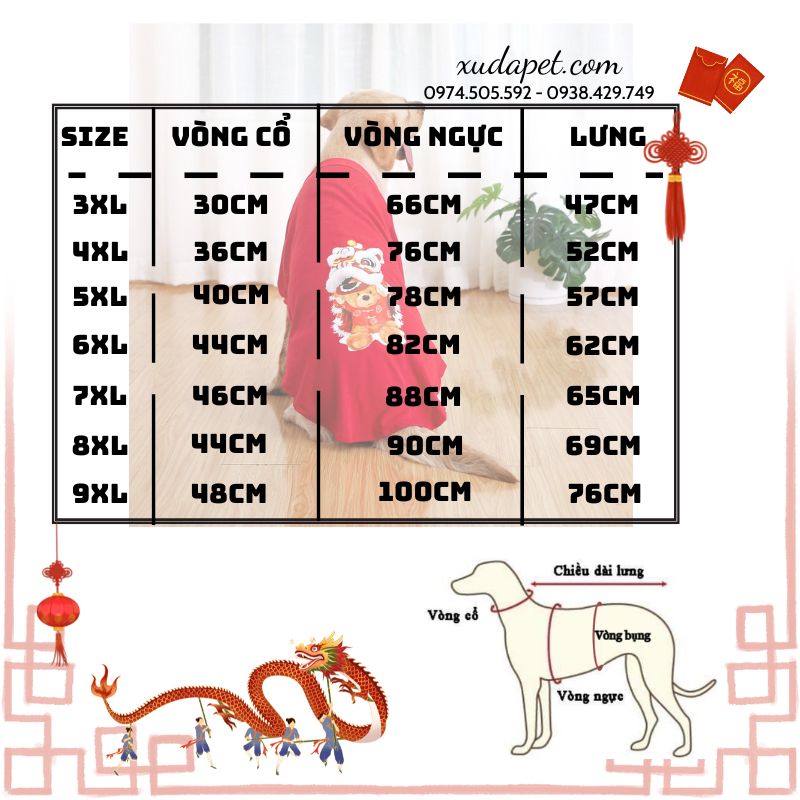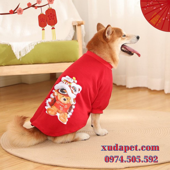 Đóng gói sản phẩm: 1x Áo gấu múa lân đỏ may mắn cho chó lớn