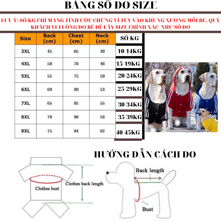 Size: 3XL, 4XL, 5XL, 6XL, 7XL, 8XL, 9XL ( THÍCH HỢP CHO CHÓ CÓ SIZE LỚN TỪ 10KG - 50KG như Alaska, samoyed , golden, husky. corgi, bergie, coli border,...)