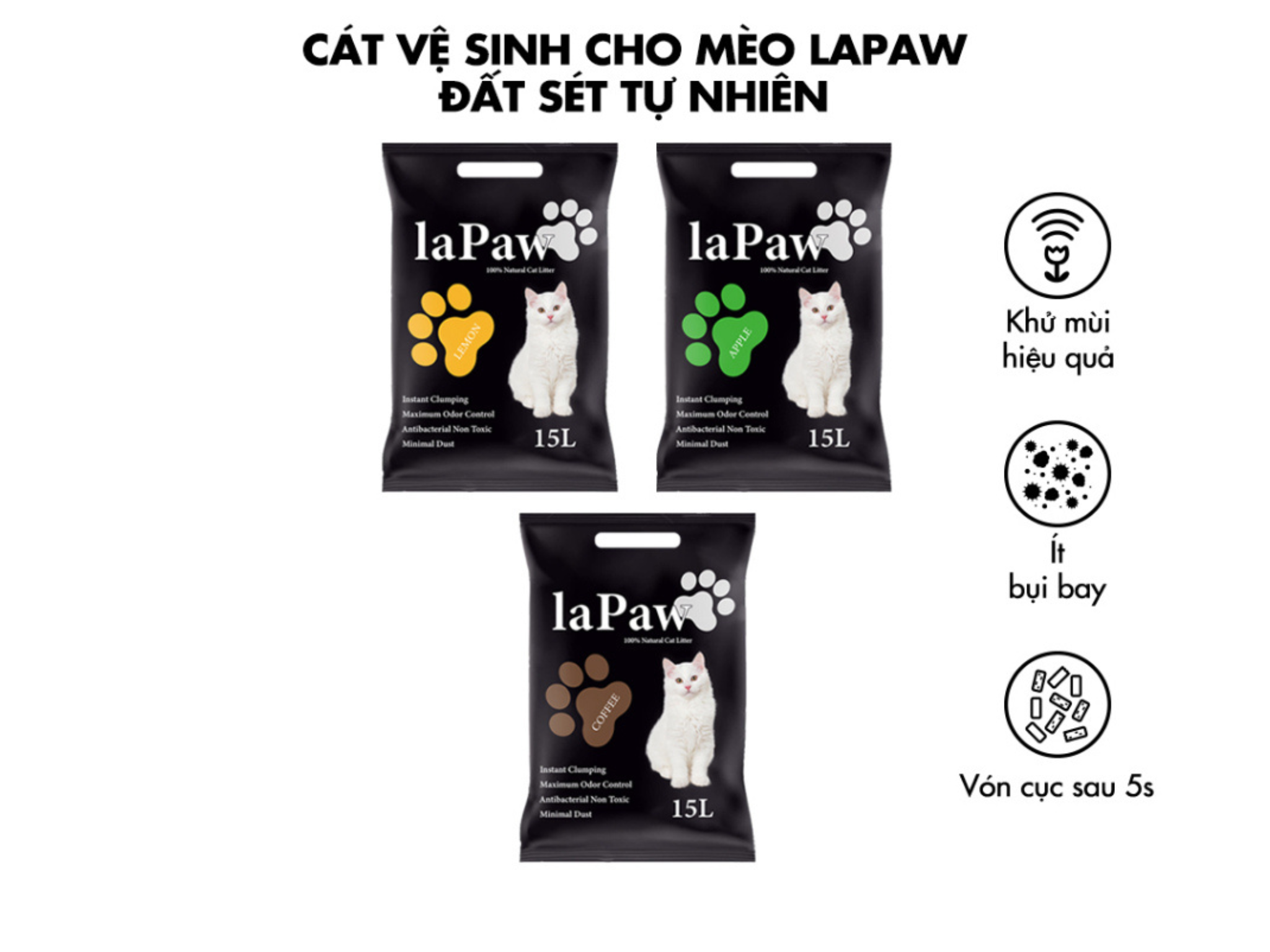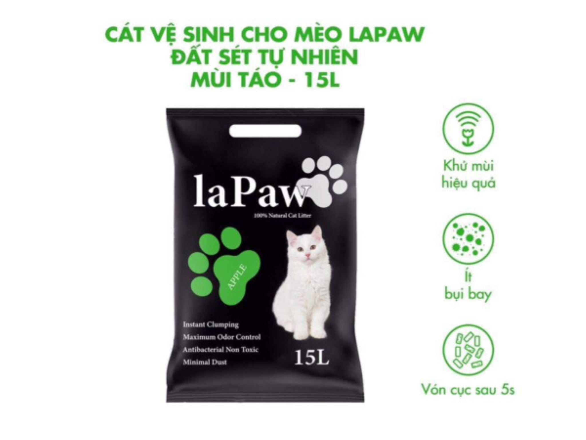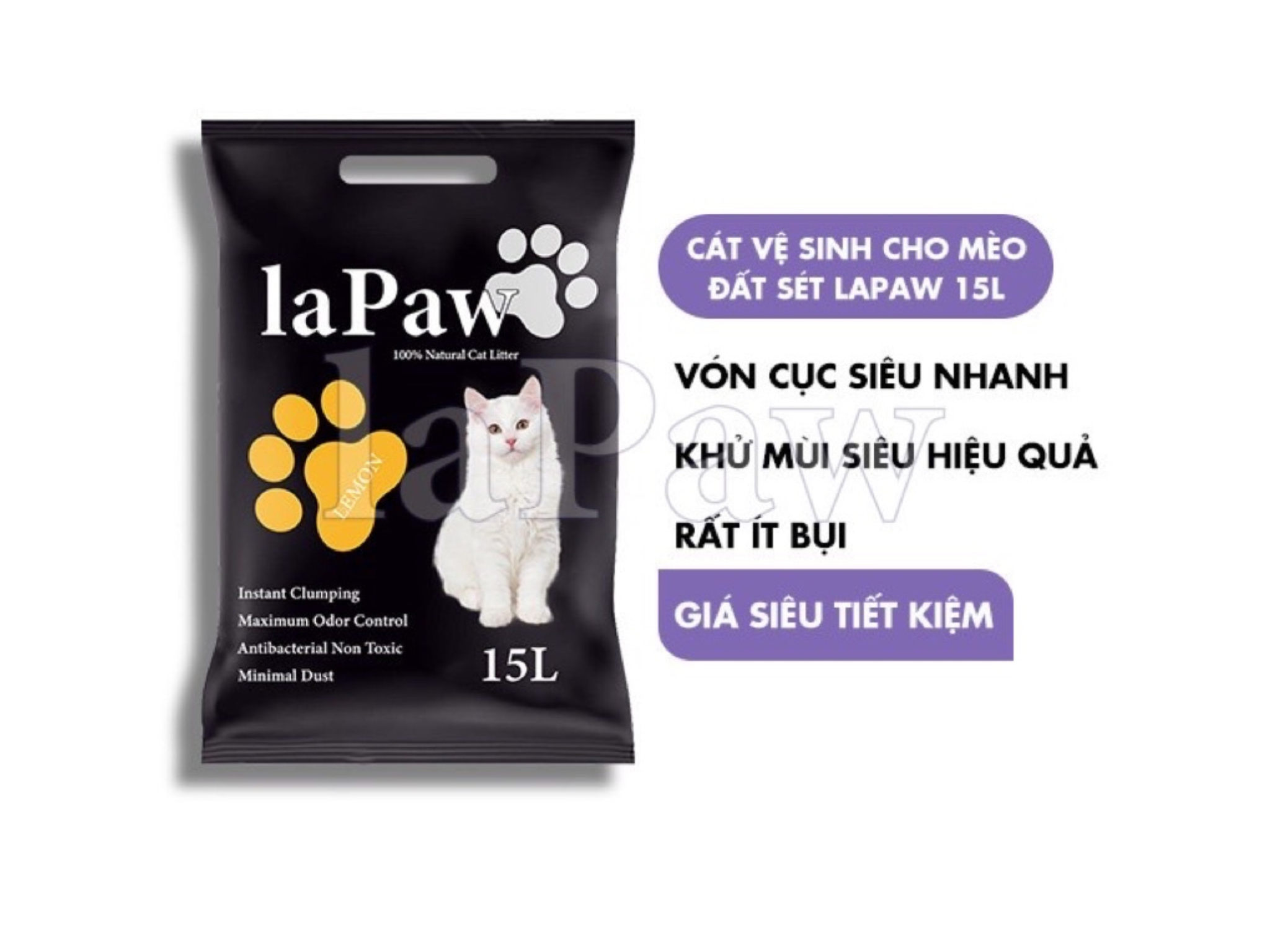 CÁT ĐẤT SÉT VỆ SINH CHO MÈO THAN HOẠT TÍNH LAPAW 15L - SP007041