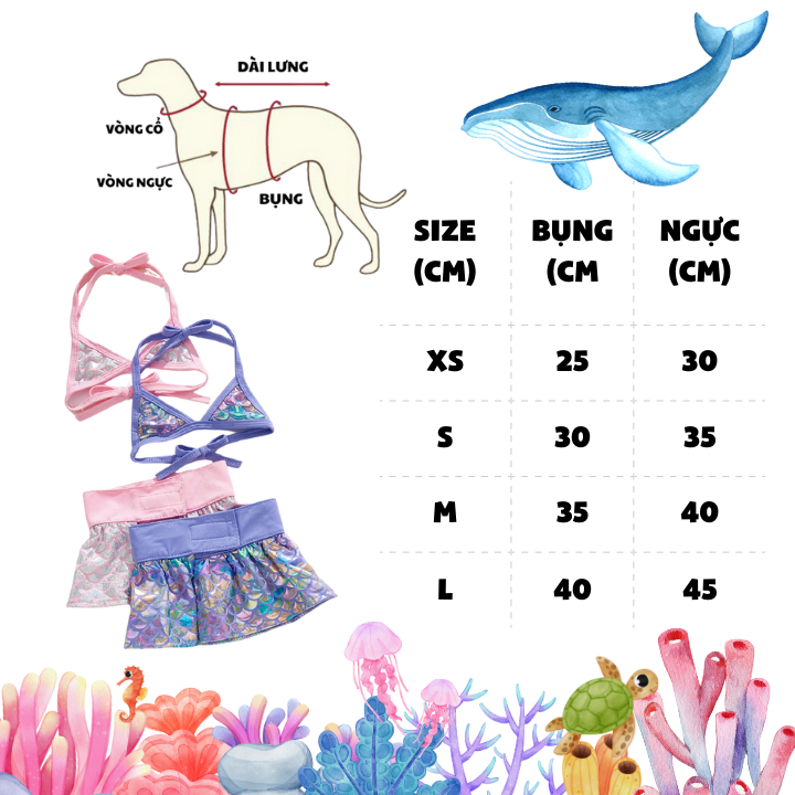 Công dụng: Đồ Bikini cho chó mèo là lựa chọn hoàn hảo để giúp thú cưng trở nên xinh xắn, nổi bật và phong cách. Đồ Bikini cho chó mèo được thiết kế dành riêng cho các "boss", Đồ Bikini cho chó mèo mang lại cảm giác thoải mái và dễ chịu, đồng thời làm nổi bật thú cưng. Đồ Bikini cho chó mèo giúp thú cưng của bạn trở thành ngôi sao tỏa sáng nhất trong mỗi dịp.