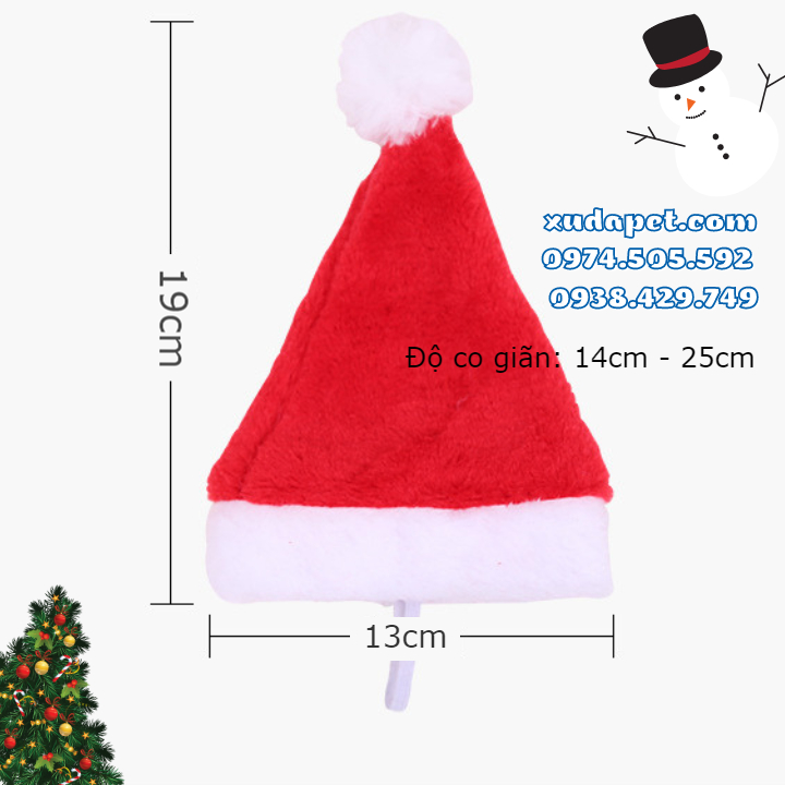 Kích cỡ khi đóng gói: nón chóp Noel cho chó mèo cao 19cm, rộng 14cm, độ co giãn từ 21-25cm