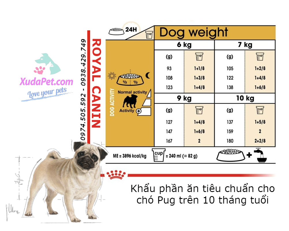 Thức ăn cho chó Pug trưởng thành trên 10 tháng tuổi