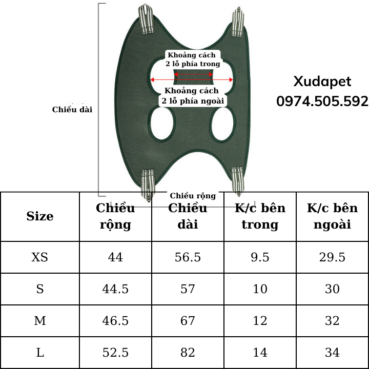 Bảng size Võng treo cố định dễ dàng cắt tỉa lông, móng cho chó mèo